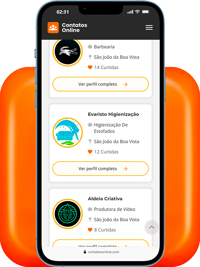 Contatos Online cria o seu cartão de visitas digital, uma página online com seus dados profissionais pronta para divulgação, onde você informa seus serviços, WhatsApp, Instagram e cidade, facilitando o contato de novos clientes. Seu cartão aparece no Google, nas buscas da sua cidade, sem precisar criar um site.