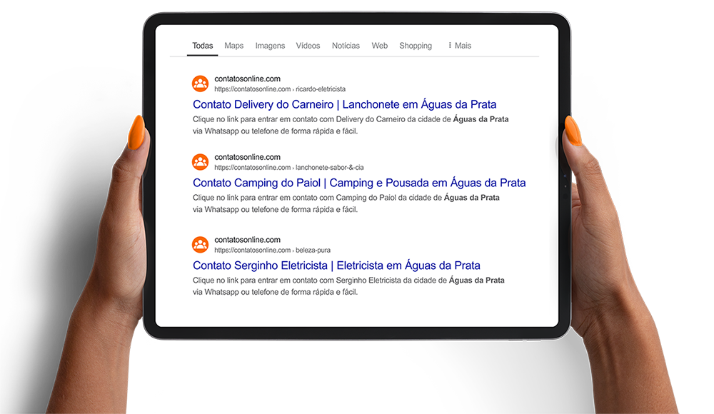 Quando pessoas da cidade ou visitantes pesquisam por serviços em Águas da Prata, elas encontram quem está no Contatos Online. Cadastre-se agora e tenha sua vitrine digital funcionando todos os dias.