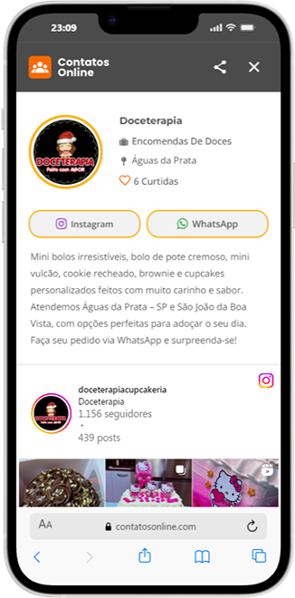 WhatsApp e Instagram: Ao entrarem na sua página, será exibido seu perfil completo com Instagram e WhatsApp.